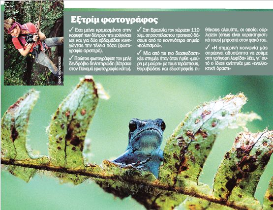 Τον αποκαλούν «ζωντανό Ταρζάν». Το επίσημο επάγγελμά του όμως είναι φωτογράφος – για την ακρίβεια, «εξτρίμ φωτογράφος». Για να φωτογραφίσει τα θέματά του ο 46χρονος Βέλγος Γκίντο Στέρκεντρις συχνά παραμονεύει επί ημέρες σκαρφαλωμένος στην κορυφή των πανύψηλων δέντρων του Αμαζονίου ή σε άλλα ακραία περιβάλλοντα. Ειδικότητά του τα ζώα, οι φυλές και οι περιοχές που κινδυνεύουν με εξαφάνιση.