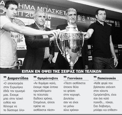 Σιγά να μην άφηνε ο κόουτς του Τριφυλλιού κ. Ζέλικο Ομπράντοβιτς την ατάκα του «Τεό» να… πέσει κάτω! « Καταλαβαίνω ότι οι παίκτες μου έχουν μεγάλη θέληση μπαίνοντας σε αυτούς τους τελικούς. Αν θυμάμαιπάντωςκαλά, ο Παναθηναϊκός έχει κατακτήσει τα 11 από τα τελευταία 12 πρωταθλήματα,οπότε άλλος πρέπει να αισθάνεται πίεση. Εχω και ένα μήνυμα προς τους οπαδούς μας:Βοηθήστε την ομάδα,αλλά σεβαστείτε τον Ολυμπιακό. Αφήστε τους παίκτες να απολαύσουν το παιχνίδι » υποστήριξε ο «Ζοτς».