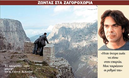 Τον δρόμο της επιστροφής στην ελληνική περιφέρεια ακολουθούν τα τελευταία χρόνια και πολλοί κάτοικοι της Αθήνας. Ξεκινώντας τη λειτουργία ενός ξενώνα στα Ζαγοροχώρια. και συγκεκριμένα στο χωριό Ανω Πεδινά, ο 45χρονος επιχειρηματίας κ. Γιάννης Αυλωνίτης έριξε μαύρη πέτρα πίσω του και εγκατέλειψε την Αθήνα. «Ηταν όνειρο ζωής να ζήσω στην επαρχία. Πίστευα και πιστεύω ότι μου ταιριάζουν περισσότερο οι ρυθμοί της» λέει. Στο ηπειρώτικο χωριό ζει και δραστηριοποιείται τα τελευταία τριάμισι χρόνια. Νωρίτερα, όταν εργαζόταν ως εμπορικός αντιπρόσωπος, «το πρώτο μέλημά μου ήταν να ταξιδεύω στην Περιφέρεια με κάθε ευκαιρία, ακόμη και με διάφορες προφάσεις, αν ήταν εφικτό».