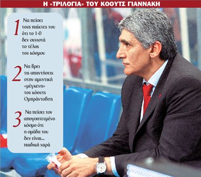 3 Ο τρίτος και βασικότερος στόχος είναι η επιστροφή της ηρεμίας στο Λιμάνι. Ο κόσμος «βράζει», το ΣΕΦ λογικά θα γεμίσει, αλλά ουδείς μπορεί να προβλέψει τις αντιδράσεις των απογοητευμένων οπαδών σε περίπτωση που το παιχνίδι «στραβώσει» από την αρχή ή (πάει να) χαθεί στα τελευταία λεπτά. « Δεν επιτρέπεται να χάνουν με κατεβασμένα χέρια » είναι η κυρίαρχη φράση στα διαδικτυακά φόρουμ ανταλλαγής απόψεων, στην οποία αποτυπώνεται η κατήφεια όχι απαραίτητα για την ήττα, αλλά για την εικόνα εφηβικής ομάδας που είχε ο Ολυμπιακός. Ισως το 1-1, απέναντι σε έναν αντίπαλο που ξέρει να κερδίζει (και) στο ΣΕΦ, επαναφέρει λίγη από τη χαμένη εμπιστοσύνη των οπαδών, ωστόσο όσοι γνωρίζουν πρόσωπα και πράγματα στον μπασκετικό Ολυμπιακό, αντιλαμβάνονται ότι το καλοκαίρι επίκεινται ριζικές αλλαγές.