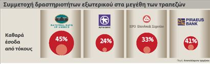 Είναι χαρακτηριστικό ότι την περίοδο Ιανουαρίου- Μαρτίου τα συνολικά καθαρά κέρδη από το εξωτερικό της Εθνικής, της Εurobank, της Αlpha Βank και της Πειραιώς ξεπέρασαν τα 190 εκατ. ευρώ, τα συνολικά κέρδη των αντίστοιχων ομίλων περιορίστηκαν στα 34 εκατ. ευρώ εξαιτίας των αρνητικών αποτελεσμάτων που κατέγραψαν στην εγχώρια αγορά. Η τάση ενίσχυσης της συμμετοχής των κερδών του εξωτερικού στη διαμόρφωση του τελικού αποτελέσματος αναμένεται να συνεχιστεί, καθώς σε αντίθεση με την ελληνική οικονομία που έχει εισέλθει σε φάση ύφεσης η πλειονότητα των αγορών στις οποίες οι τράπεζες έχουν παρουσία εκτός Ελλάδος, όπως η Τουρκία, η Πολωνία, η Ρουμανία και η Βουλγαρία, επέστρεψαν σε θετικούς ρυθμούς ανάπτυξης, ξεπερνώντας τις εκτιμήσεις των αναλυτών.