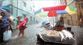 Η ΞΑΦΝΙΚΗ τροπική καταιγίδα που πλημμύρισε την υπαίθρια αγορά της πόλης Γιανγκόν στη Μιανμάρ δεν μοιάζει αρκετή για να τρομάξει αυτή τη θαρραλέα πωλήτρια ψαριών, η οποία χαμογελά στον φακό κάτω από την ομπρέλα της. Η ζωή παραμένει πολύ δύσκολη για την πλειονότητα των κατοίκων της παλαιάς Βιρμανίας, οι οποίοι εκτός από τη φτώχεια υφίστανται και τον ζυγό μιας σκληρής στρατιωτικής δικτατορίας.