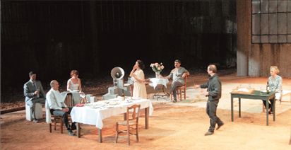 Ο Λευτέρης Βογιατζής δεν κατάφερε να δημιουργήσει τις προϋποθέσεις ώστε να ορθοποδήσει το έργο. Δούλεψε με αξιόλογους ηθοποιούς- Ρένη Πιττακή, Αγγελική Παπαθεμελή, Δημήτρης Ημελλος κ.ά.-, οι οποίοι έκαναν ό,τι καλύτερο μπορούσαν. Εμοιαζε τόσο λίγο και τόσο μάταιο όμως! Σκορπισμένοι στο αχανές σκηνικό, με το τεχνικό πρόβλημα στον ήχο να τους καταδιώκει (τουλάχιστον στην πρεμιέρα) και να τους «τρώει» τα λόγια, φαίνονταν ανίσχυροι να κυριαρχήσουν στον χώρο και στον χρόνο. Ο σκηνοθέτης ζήτησε από τη σκηνογράφο Χλόη Ομπολένσκι να ξαναφτιάξει με τη φαντασία της το κτήμα των παιδικών του αναμνήσεων, όπου έκανε ποδήλατο μικρός. Το αποτέλεσμα ήταν πράγματι εντυπωσιακό ως προς την κλίμακα και το σκηνικό από τα πιο ωραία που έχουν στηθεί ως σήμερα στην Πειραιώς 260. Χώμα, χώμα, χώμα, αλλού πατημένο, αλλού σκαμμένο, ένα κτήμα να το βλέπεις και να χορταίνεις την άπλα του, άδειο από περιττά αντικείμενα- μονάχα ένα δέντρο και λίγα έπιπλα για να καθήσουν οι καλεσμένοι της οικογένειας, να γιορτάσουν την άφιξη μιας νέας ζωής. Να όμως που το χωμάτινο τοπίο κατάπιε τους ηθοποιούς. Ενας μικρότερος χώρος με μια πιο κλειστοφοβική σκηνή θα επέτρεπε, νομίζω, αν μη τι άλλο, να αναδυθεί η νοσηρή οικειότητα των ηρώων. Δεδομένων των συνθηκών, πάντως, η συνολική εμπειρία- κειμένου, σκηνοθεσίας και ήχου- στάθηκε μάλλον ανυπόφορη.