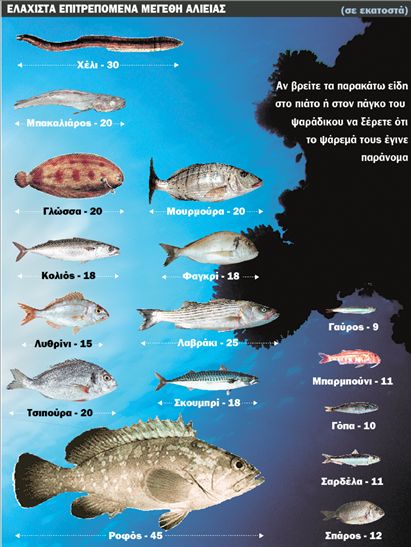 Ωστόσο η συνέχιση της αλίευσης ψαριών κάτω από τα ελάχιστα επιτρεπόμενα μεγέθη και μάλιστα σε υπερβολικό βαθμό θεωρείται από ορισμένους απαράγραπτο δικαίωμα και μάλιστα με την κλασική επίδειξη …ελληνικού τσαμπουκά. Λόγω του όγκου της δραστηριότητάς τους οι πρώτοι που ενοχοποιούνται για την ελληνική… γονοκτονία είναι οι μηχανότρατες οι οποίες συνεχίζουν να σαρώνουν παράνομα τεράστιες εκτάσεις με τα δίχτυα τους στον βυθό, ερημώνοντας τα πάντα. « Δυστυχώς, όπως συμβαίνει στα περισσότερα πράγματα στην Ελλάδα, οι νόμοι υπάρχουν αλλά δεν εφαρμόζονται. Για την τσιπούρατο ελάχιστο επιτρεπόμενο μέγεθος είναι 20 εκατ. Ψαρεύεται παρ΄ όλα αυτά παντού. Ειδικά η αγορά της Βόρειας Ελλάδας έχει κατακλυστεί από τη λεγόμενη λίγδα,τη μικρή τσιπούρα που είναι μεγέθους 10-12 εκατοστών» επισημαίνει ο πρόεδρος της Συνομοσπονδίας Αλιευτικών Οργανώσεων κ. Δημήτρης Κοτσοργιός. Μια βόλτα στο Διαδίκτυο αρκεί για να καταλάβει κανείς την κατάσταση. Οι συνταγές με γόνο καλαμαριού αλλά και πολύ μικρών ψαριών είναι εκατοντάδες και οι συγγραφείς τους κάθε άλλο παρά «ντρέπονται» να δηλώσουν το όνομά τους. « Υπάρχει ευθύνη και των καταναλωτών.Δεν είναι δυνατόν να πηγαίνουμε σε μια ταβέρνα και να ζητάμε π.χ. γόνο καλαμαριού » συμπληρώνει ο πρόεδρος της Ομοσπονδίας Παράκτιων Αλιέων Νότιου Αιγαίου κ. Δημήτρης Ζαννές.