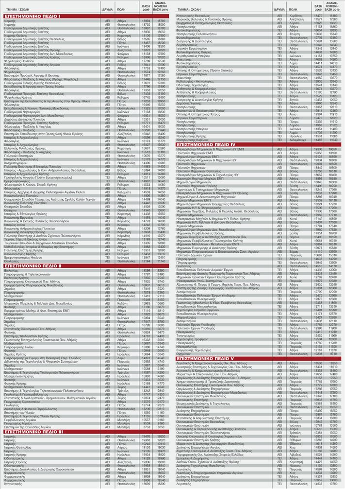 Οι τάσεις των βάσεων για ΑΕΙ και ΤΕΙ