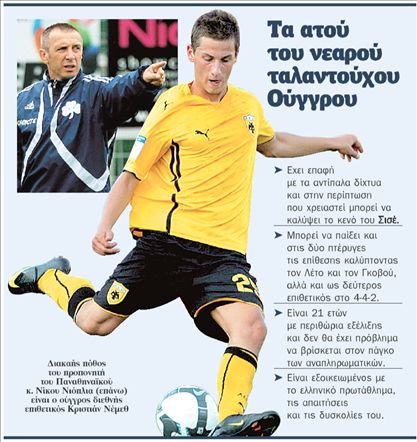 Γιατί όμως κατέληξε ο κοζανίτης προπονητής στον 21χρονο ούγγρο διεθνή επιθετικό, ο οποίος ανήκει στη Λίβερπουλ και πέρυσι αγωνίστηκε ως δανεικός στην ΑΕΚ; Κατ΄ αρχάς η τιμή του δεν είναι απαγορευτική. Εστω κι αν αυτή την περίοδο οι Κόκκινοι της Αγγλίας αξιώνουν περίπου 2 εκατ. ευρώ για την παραχώρησή του, είναι βέβαιον ότι όσο πλησιάζει η λήξη της μεταγραφικής περιόδου οι απαιτήσεις τους θα πέσουν. Επιπλέον ο εξελίξιμος επιθετικός, ο οποίος αγωνίζεται τόσο στην κορυφή της επίθεσης όσο και στα άκρα, δεν έχει «βαρύ» συμβόλαιο και το σημαντικότερο, δεν απαιτεί θέση στην 11άδα. Αντιθέτως υπόσχεται να δουλέψει σκληρά και να εκμεταλλευθεί τις όποιες ευκαιρίες του παρουσιαστούν!