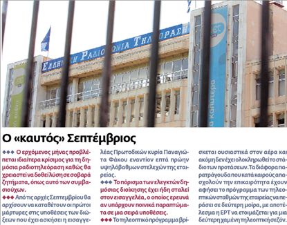 Οπως όλα δείχνουν, στις αρχές Οκτωβρίου, έναν χρόνο μετά τις εκλογές, η ΕΡΤ θα είναι χωρίς διευθύνοντα σύμβουλο. Πριν από λίγες ημέρες αναρτήθηκε εκ νέου στην ιστοσελίδα opengov.gr η προκήρυξη για την πλήρωση της θέσης. Η προθεσμία για την υποβολή των σχετικών αιτήσεων λήγει στις 3 Σεπτεμβρίου. Στη συνέχεια θα γίνει η επιλογή από τον υπουργό Πολιτισμού κ. Παύλο Γερουλάνο και θα ξεκινήσει η διαδικασία για την έγκριση του προσώπου που θα επιλεγεί από το Εθνικό Συμβούλιο Ραδιοτηλεόρασης και την αρμόδια επιτροπή της Βουλής. Το ζήτημα είναι ότι με το ύψος των αμοιβών που διατίθεται να προσφέρει η κυβέρνηση- οι οποίες δεν θα ξεπερνούν τις 7.000 ευρώ- δεν θα είναι πολύ εύκολο να βρεθεί το πρόσωπο που θα αναλάβει το σισύφειο έργο της διοίκησης και εξυγίανσης της ΕΡΤ.