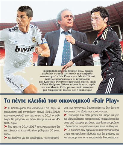 Τον Μάιο του 2008, λίγο πριν από τη διεξαγωγή του «αγγλικού» τελικού του Τσάμπιονς Λιγκ ανάμεσα στη Μάντσεστερ Γιουνάιτεντ και στην Τσέλσι, ο πρόεδρος της UΕFΑ κ. Μισέλ Πλατινί είχε σημειώσει το παράδοξο: «Οι ομάδες που έχουν το μεγαλύτερο οικονομικό χρέος στην Ευρώπη διεκδικούν το σημαντικότερο τρόπαιο της Γηραιάς Ηπείρου». Εκτοτε ξεκίνησε και επισήμως η προσπάθεια να μπει τάξη στο οικονομικό χάος που διέπει το ευρωπαϊκό ποδόσφαιρο και όπως έγινε γνωστό τον περασμένο Μάιο εγκρίθηκε ο κανονισμός για το Financial Fair Ρlay (FFΡ) που θα επιχειρήσει να «συνετίσει» τους συλλόγους και να τους αναγκάσει να πορεύονται ανάλογα με τα έσοδά τους. Η εφαρμογή τού FFΡ θα ξεκινήσει σταδιακά την τριετία 2011-2014, περίοδος κατά την οποία θα επιτραπεί στις ομάδες να έχουν συνολικό έλλειμμα που δεν πρέπει να ξεπερνά τα 45 εκατ. ευρώ, ποσό που θα πρέπει να μειωθεί σε μάξιμουμ 30 εκατ. ευρώ την αμέσως επόμενη τριετία (2014-2017), ενώ ως το 2020 οι ομάδες θα πρέπει να έχουν ισοσκελισμένους τους (τριετείς) ισολογισμούς τους.