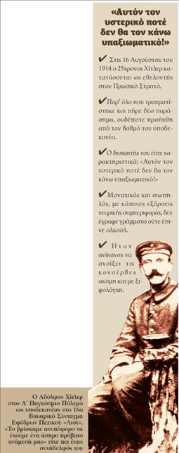 ΕΔΙΜΒΟΥΡΓΟ Νέες αποκαλύψεις για τη ζωή του Αδόλφου Χίτλερ, πολύ πριν ηγηθεί του Εθνικοσοσιαλιστικού Κόμματος και γίνει δικτάτορας της ναζιστικής Γερμανίας, έρχονται στο φως από τον ιστορικό και λέκτορα στο Πανεπιστήμιο Αμπερντίν της Σκωτίας Τόμας Γουέμπερ. Στο επίκεντρο ο ιστορικός φέρνει τον Α΄ Παγκόσμιο Πόλεμο, όπου ο κατά ορισμένους «ήρωας» υποδεκανέας Χίτλερ αποδεικνύεται ότι ήταν αντικείμενο χλευασμού των συμπολεμιστών του.