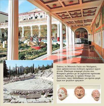Στην πόλη της μεγαλύτερης βιομηχανίας κινηματογράφου του κόσμου, το Λος Αντζελες, μια έκθεση για το αρχαίο ελληνικό θέατρο έρχεται να θυμίσει στο κοινό, αμερικανούς και ξένους επισκέπτες, από πού, πώς και πότε ξεκίνησαν όλα. Στο Μουσείο Γκέτι (Βίλα Μαλιμπού) από τις 26 Αυγούστου 2010 ως τις 3 Ιανουαρίου 2011 η έκθεση με τίτλο «Η τέχνη του αρχαίου ελληνικού θεάτρου» φιλοδοξεί να απαντήσει σε όλα τα ερωτήματα πιάνοντας την ιστορία από την αρχή: από τη γέννηση του θεάτρου ως γιορτής αφιερωμένης στον Διόνυσο ως τη γρήγορη εξάπλωσή του σε όλον τον αρχαίο ελληνικό κόσμο, δηλαδή σε όλη τη Μεσόγειο, και από τους ποιητές του αρχαίου δράματος ως τα αντικείμενα που συνδέονται με τη θεατρική τέχνη και διασώθηκαν μέσα στους αιώνες.