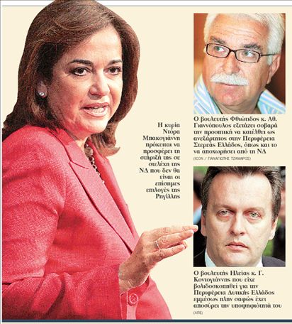Ο ένας είναι ο βουλευτής Φθιώτιδος κ. Αθ. Γιαννόπουλος, ο οποίος φέρεται να εξετάζει σοβαρά την προοπτική να κατέλθει ως ανεξάρτητος υποψήφιος στην Περιφέρεια Στερεάς Ελλάδος, όπως και το να αποχωρήσει από τη ΝΔ. Ο άλλος είναι ο κ. Γ. Κοντογιάννης . Ο βουλευτής Ηλείας είχε βολιδοσκοπηθεί από τη Ρηγίλλης ως πιθανός υποψήφιος για την Περιφέρεια Δυτικής Ελλάδος.