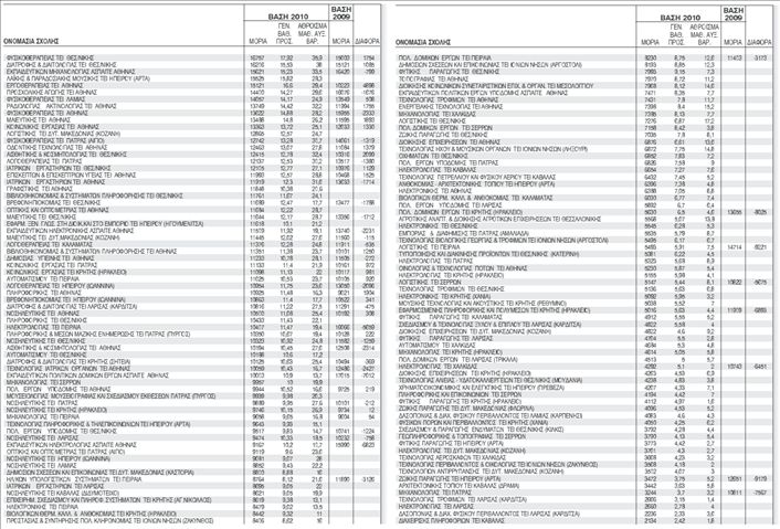 ΒΑΣΕΙΣ 2010 – ΤΕΙ (ΕΣΠΕΡΙΝΑ ΛΥΚΕΙΑ 90%)