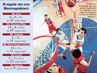 Οσο για την πενιχρή (4΄) συμμετοχή του- η οποία είχε ήδη συρρικνωθεί μετά την επιστροφή των τιμωρημένων (τις δύο πρώτες αγωνιστικές) Αντώνη Φώτση και Σοφοκλή Σχορτσανίτη – από τον ομοσπονδιακό προπονητή κ. Γιόνας Καζλάουσκας στον κρίσιμο αγώνα με την Εθνική Ισπανίας, ο διεθνής άσος έδειξε το ήθος του υποστηρίζοντας: «Ηταν απόφαση του προπονητή και από μένα είναι σεβαστή. Δεν μπορούμε αυτή τη στιγμή να κρίνουμε τον προπονητή για την επιλογή του. Η αλήθεια είναι ότι ένιωθα καλά σε αυτό το τουρνουά και θα μπορούσα να δώσω τουλάχιστον κάποιες ανάσες στα παιδιά που είχαν κουραστείώστε να έχουν δύναμη στο τέλος του αγώνα, εφόσον αυτό ήταν το πλάνο του προπονητή».