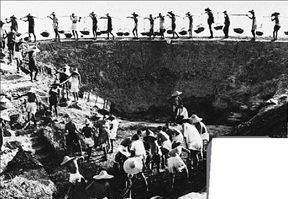 Η αχανής χώρα σύρθηκε σε έναν πυρετό παραγωγής χάλυβα από κάθε είδους κατασχεθέν μεταλλικό αντικείμενο: από κάγκελα μέχρι κρεβάτια, ακόμη και καραβάνες και χύτρες.