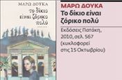 Το δίκιο είναι ζόρικο πολύείναι ένα ιστορικό μυθιστόρημα με τις ιδιαιτερότητες που του προσδίδει η συγγραφέας Μάρω Δούκα.Πρόκειται για τη συνέχεια του προηγούμενου βιβλίου της Αθώοι και φταίχτες και μάλλον οι φίλοι της θα περιμένουν τη συνέχειά του,ένα τρίτο μυθιστόρημα που θα αφορά τον Εμφύλιο στην Κρήτη και τον μύθο ότι στο νησί δεν υπήρξε Εμφύλιος.Η Ιστορία παίζει πρωταγωνιστικό ρόλο σε αυτό το μυθιστόρημα.Ωστόσο το βιβλίο αυτό δεν ανήκει ούτε στο είδος όπου η Ιστορία είναι απλώς ένα πλαίσιο μέσα στο οποίο διαδραματίζονται τα γεγονότα μιας μυθοπλασίας ούτε είναι ένα μυθιστόρημα «ιστορικιστικό», όπου απλώς περιγράφονται ιστορικά γεγονότα με λιγότερη ή περισσότερη ακρίβεια.Για τη Μάρω Δούκα «τα ιστορικά γεγονότα,αναπόσπαστα της βαθύτερης αιτίας του βιβλίου,δεν ανασύρονται για να υπηρετήσουν τη μυθοπλασία,αλλά για να την εκθέσουν διεκδικώντας διαβρωτικά τον πρωταγωνιστικό τους ρόλο». Τα ιστορικά γεγονότα προσφέρουν τη δική τους αφήγηση,πλούσια και αρκούντως μυθιστορηματική. Η πορεία αυτογνωσίας της ηρωίδας της Βιργινίας είναι και πορεία αναζήτησης της συνείδησης της συγγραφέως μέσα στην Ιστορία.Είναι η δική της κατάθεση για τον τόπο της,τα Χανιά, η αναζήτηση και έκθεση της δικής της άποψης.