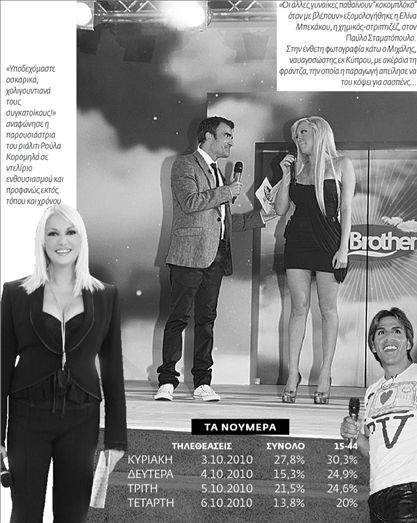 Παίκτες υποψιασμένοι (άλλο τόσο και οι θεατές), πρόθυμοι να παίζουν το παιχνίδι όπως ακριβώς πρέπει ώστε να προκαλέσει. Κάστινγκ βασισμένο σε ιδιαιτερότητες που πουλάνε και πουλιούνται με ευκολία. Συμπεριφορές στημένες και αγώνας δρόμου για το χρήμα. Ο «Βig Βrother» του 2010 σερβιρίστηκε από τον Αlpha ακριβώς όπως τον περιμέναμε: με ενοίκους με ροζ παρελθόν, με λαϊκούς μάγκες, με φουσκωτούς «τρέντηδες», με γραφικές γεροντοκόρες, με χαβαλέδες… Με ένα μάτσο απελπισμένους ανέργους που ονειρεύονται το πακέτο των 200.000 ευρώ. Και αν η είσοδος των παικτών, η οποία χαρακτηρίστηκε από την παλαίμαχο παρουσιάστριά του Ρούλα Κορομηλά «χολιγουντιανή», σημείωσε ικανοποιητική τηλεθέαση, η πορεία του παιχνιδιού δείχνει πτώση των αριθμών, φανερώνει πως δύσκολα, πολύ δύσκολα πια, το τηλεοπτικό κοινό θα πεισθεί να παρακολουθήσει τις βαρετές περιπέτειες των έγκλειστων παικτών ενός ξεπερασμένου ριάλιτι.