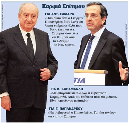 Η παρέμβαση του κ. Μητσοτάκη ενόχλησε την «προεδρική φρουρά» και βουλευτές της ΝΔ που είναι στην κορυφή της κομματικής πυραμίδας έλεγαν αργά το βράδυ σε έντονο ύφος: «Ο πατέρας των εξαπτέρυγων βγήκε να επιτεθεί την ώρα που πάει καλά η ΝΔ. Είναι η τελευταία ζαριά πριν από τις εκλογές. Να ξέρουν όμως ότι κάθε φορά που εμφανίζεται ο Μητσοτάκης και επιτίθεται στον Σαμαρά η ΝΔ παίρνει δύο μονάδες». Ιδιαίτερο ενδιαφέρον είχε και η θετική αναφορά του κ. Μητσοτάκη στον υποψήφιο περιφερειάρχη Κρήτης κ. Δ. Γιαννουλάκη που, όπως είπε, τον στηρίζει, ενώ, όπως είναι γνωστό, πολιτική μάχη για την εκλογή του δίνει και η κυρία Ντόρα Μπακογιάννη. Η δήλωση αυτή προκάλεσε την έντονη αντίδραση των «σαμαρικών» βουλευτών που έλεγαν με δηλητηριώδες ύφος: «Ο “αποστάτης” καλεί σε αποστασία τον κόσμο της ΝΔ στην Κρήτη».