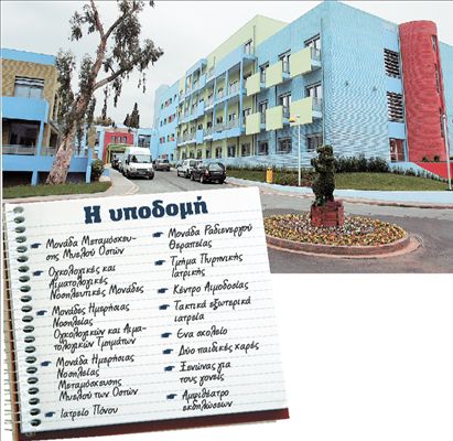 Το πρώτο ογκολογικό νοσοκομείο για παιδιά στην Ελλάδα γίνεται επιτέλους πραγματικότητα. Παρά τις πολλές δυσκολίες και καθυστερήσεις, το νέο σύγχρονο νοσοκομείο ολοκληρώθηκε και την Πέμπτη το μεσημέρι θα εγκαινιαστεί από τον Πρόεδρο της Δημοκρατίας κ. Κάρολο Παπούλια και τον Αρχιεπίσκοπο κ. Ιερώνυμο. Οι εγκαταστάσεις του υλοποιήθηκαν βάσει των πιο σύγχρονων προδιαγραφών αντισεισμικότητας και ασφάλειας. Πέντε κτίρια συνδεδεμένα μεταξύ τους, συνολικής έκτασης 14.911 τετραγωνικών μέτρων, θα αποτελούν στο εξής το «οχυρό» των παιδιών με καρκίνο και των οικογενειών τους, ενώ μηχανήματα τελευταίας τεχνολογίας και ό,τι άλλο διαθέτει η επιστήμη θα είναι τα «όπλα» τους ενάντια στον καρκίνο. Το ογκολογικό νοσοκομείο για παιδιά βρίσκεται στου Γουδή, είναι δυναμικότητος 138 κλινών και συνδέεται με το νοσοκομείο «Η Αγία Σοφία» με αεροδιάδρομο.