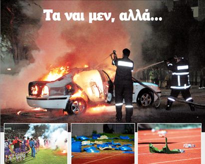 Η καύση βεγγαλικών: « Εθιμο» το οποίο κοστίζει ετησίως σε πρόστιμα εκατοντάδες χιλιάδες ευρώ. Χωρίς καύση βεγγαλικών παιχνίδι δεν ξεκινάει και γκολ δεν πανηγυρίζεται. Ενίοτε τα μοιράζουν σε σακούλες οι σεκιούριτι σε γνώση ή και κατ΄ εντολήν των ΠΑΕ. Τα υβριστικά συνθήματα: O κάθε νοήμων «απαγορεύεται» να πάει με τη γυναίκα και το παιδί του στο γήπεδο. Οσο για τους διαιτητές, ας απολογηθούν στις μανάδες τους για όσα προσβλητικά ανέχονται να λέγονται εναντίον τους.