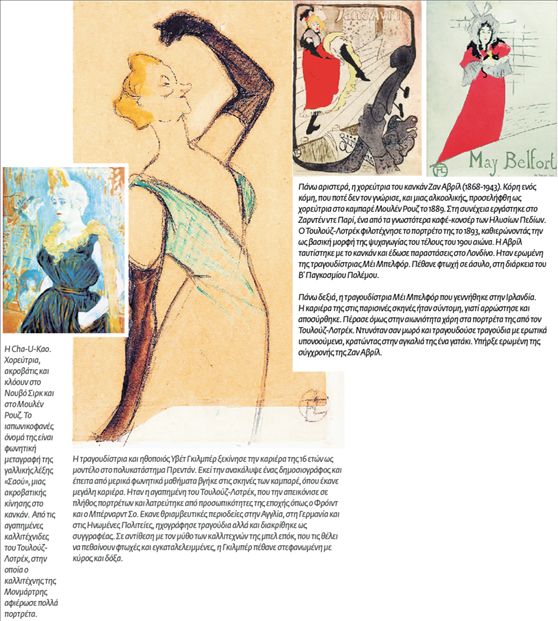 «Χάρη στην αγάπη του για τη γυναίκα, ο Τουλούζ-Λοτρέκ παραδίδει στην “αθανασία” καλλιτέχνιδες, χορεύτριες, ηθοποιούς, μοντέλα, τραγουδίστριες και αμέτρητα κορίτσια της νύχτας που σήμερα θα είχαμε ξεχάσει» μας λέει η κυρία Αλεξάνδρα Γουλάκη-Βουτυρά, επιμελήτρια της έκθεσης «Τoulouse Lautrec» που διοργανώνεται στο Τελλόγλειο Ιδρυμα Τεχνών του Αριστοτελείου Πανεπιστημίου της Θεσσαλονίκης. «Ξεκινώντας από τη μητέρα του, στα χέρια τής οποίας πέθανε αλκοολικός και συφιλιδικός σε ηλικία μόλις 37 ετών, λέγοντάς της “Εσύ μητέρα, καμία άλλη, παρά μόνο εσύ”, ο Τουλούζ-Λοτρέκ προέβαλλε καθ΄ όλη τη διάρκεια του έργου του με μεγάλη δύναμη και ευαισθησία τη γυναικεία φιγούρα», εξηγεί η κυρία Βουτυρά. «Πολλές από τις “μούσες” του παραδόθηκαν ως τις ημέρες μας με τα ψευδώνυμά τους- αγαπημένη συνήθεια της εποχής» μας λέει η κυρία Βουτυρά. «Ο λόγος για τη σπουδαία αργεντινή τραγουδίστρια Πολέρ (πολική) και για το μοντέλο Κρόκσι (τραγανή) Μαργκέν, φιλενάδα ενός φίλου του που δούλευε ως μοντέλο σε κατάστημα καπελούς της Μονμάρτρης». Σύμφωνα με την κυρία Βουτυρά, τέλος, η προσήλωση του Λοτρέκ στη γυναίκα αναδύεται και μέσα από το πορτρέτο της «Επιβάτιδος της καμπίνας 54», της οποίας ποτέ δεν έγινε γνωστό το όνομα. Ο λόγος για τη γυναίκα την οποία ο Λοτρέκ ερωτεύτηκε και ακολούθησε με το πλοίο από Χάβρη προς Λισαβόνα χωρίς να της μιλήσει ποτέ. «Με ιδιαίτερη συμπάθεια και ανθρωπιά, τέλος, ο Λοτρέκ μας παραδίδει τις πόρνες της Μονμάρτρης. Την κούραση, την απογοήτευση και την προσπάθειά τους να κρατηθούν στον αγώνα της ζωής υπό τον τίτλο “Τα κορίτσια της χαράς”».