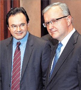 Ως προς τα άμεσα προβλήματα και κυρίως αυτό που έθεσε προχθές ο επίτροπος κ. Ολι Ρεν όταν είπε ότι «η ελληνική κυβέρνηση πιθανώς θα πρέπει να λάβει νέα μέτρα αν τα ελλείμματα του παρελθόντος αποδειχθούν εκ νέου μεγαλύτερα των υπολογισθέντων» ο υπουργός εμφανίστηκε μάλλον καθησυχαστικός λέγοντας ότι οι δηλώσεις του επιτρόπου δεν ήταν παρά «μια υπόθεση εργασίας». Επί της ουσίας άφησε να εννοηθεί ότι, όσο μεγάλη κι αν είναι η αναθεώρηση των παρελθόντων στοιχείων, η κατάσταση της ελληνικής οικονομίας θα είναι τελικώς αντιμετωπίσιμη και ότι εν πάση περιπτώσει «δεν θα φορτωθούν νέα βάρη οι μισθωτοί και οι συνταξιούχοι». Ως προς το ενδεχόμενο της προς τα άνω αναθεώρησης των στατιστικών στοιχείων της Ελλάδας ο υπουργός υπογράμμισε ότι ήταν προδιαγεγραμμένη. Συνέχισε ωστόσο λέγοντας ότι η συνεργασία ανάμεσα στις κοινοτικές και στις ελληνικές υπηρεσίες είναι πλέον απολύτως ικανοποιητική, κάτι που, όπως είπε, αναγνωρίζουν και οι Βρυξέλλες.