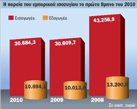 Μεταστροφή της αρνητικής τάσης στις εξωτερικές εμπορικές σχέσεις της χώρας μας καταγράφεται στα τελευταία στοιχεία της Τράπεζας της Ελλάδος ως αποτέλεσμα κυρίως της ραγδαίας υποχώρησης των εισαγωγών. Αναλυτικότερα, την περίοδο Ιανουαρίου- Αυγούστου το έλλειμμα του ισοζυγίου τρεχουσών συναλλαγών μειώθηκε κατά 2,1% ή 342 εκατ. ευρώ σε σχέση με την αντίστοιχη περίοδο του προηγούμενου έτους. Το συγκεκριμένο μέγεθος είχε εμφανίσει μέση αύξηση 0,4% το διάστημα Ιανουαρίου- Ιουνίου, αλλά τον Ιούλιο μειώθηκε κατά 11,6% και τον Αύγουστο κατά 44,5%. Σύμφωνα με την Τράπεζα της Ελλάδος, η εξέλιξη αυτή αντανακλά κυρίως τη μείωση του ελλείμματος του εμπορικού ισοζυγίου και την αύξηση του πλεονάσματος του ισοζυγίου των υπηρεσιών και, δευτερευόντως, τη μικρή μείωση του ελλείμματος του ισοζυγίου των εισοδημάτων. Αντίθετα, το πλεόνασμα του ισοζυγίου των τρεχουσών μεταβιβάσεων περιορίστηκε αισθητά. Αναλυτικότερα, ο περιορισμός του συνολικού ελλείμματος του εμπορικού ισοζυγίου κατά 606 εκατ. ευρώ προήλθε από τη μείωση του εμπορικού ελλείμματος εκτός καυσίμων και πλοίων κατά 1,73 δισ. ευρώ. Οι πληρωμές για εισαγωγές αγαθών εκτός καυσίμων και πλοίων μειώθηκαν κατά 1,99 δισ. ευρώ ή 9,7%, ενώ οι εισπράξεις από τις αντίστοιχες εξαγωγές μειώθηκαν κατά 270 εκατ. ευρώ ή 3,6%. Η μείωση της κατανάλωσης έχει οδηγήσει σε σημαντικά χαμηλότερα επίπεδα τις εισαγωγές. Σε σχέση με την ίδια περίοδο του 2008 η πτώση είναι ακόμη μεγαλύτερη, με την πτώση στην αξία των εισαγωγών να αγγίζει τα 9 δισ. ευρώ. Στον αντίποδα, οι καθαρές πληρωμές για εισαγωγές καυσίμων αυξήθηκαν κατά 1,06 δισ. ευρώ ή 20,7%, ενώ οι καθαρές πληρωμές για αγορές πλοίων αυξήθηκαν οριακά κατά 62 εκατ. ευρώ ή 2,5%.