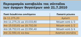 Από την άλλη, άγαμες θυγατέρες ή γιοι που συνταξιοδοτούνται μετά τις 21 Ιουλίου 2010 θα λαμβάνουν τη σύνταξη ως τα 18 ή 24 έτη εφόσον σπουδάζουν. Υπάρχουν όμως και εξαιρέσεις για τις γυναίκες που συνταξιοδοτήθηκαν μετά τις 21 Ιουλίου. Θα συνεχίσουν να λαμβάνουν τη σύνταξη εφόσον συμπληρώσουν το 50ό έτος της ηλικίας τους ως τις 31 Δεκεμβρίου 2010 (δηλαδή έχουν γεννηθεί ως το 1960), δεν λαμβάνουν μηνιαίο εισόδημα από το Δημόσιο μεγαλύτερο των 364,5 ευρώ, δεν έχουν άλλα ετήσια εισοδήματα άνω των 5.102 ευρώ και δεν λαμβάνουν άλλη σύνταξη ούτε είναι ασφαλισμένες για κύρια σύνταξη.