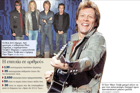 Oι Βon Jovi, ένα από τα μεγαλύτερα μουσικά σχήματα παγκοσμίως, θα επισκεφθούν για πρώτη φορά την Ελλάδα στις 20 Ιουλίου 2011. Το συγκρότημα από το Νιου Τζέρσεϊ των ΗΠΑ, το οποίο διανύει την τρίτη δεκαετία της ιστορίας του, θα δώσει μία και μοναδική συναυλία στο Ολυμπιακό Στάδιο της Αθήνας η οποία θα περιλαμβάνει όλες τις μεγάλες επιτυχίες του, στο πλαίσιο της περιοδείας «Οpen Αir 2011».