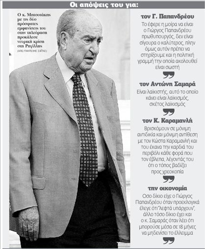Και τις δύο φορές που δέχθηκε να εμφανιστεί στην τηλεόραση (αψηφώντας τις πιέσεις της κυρίας Ντόρας Μπακογιάννη που του έχει ζητήσει να μην εμφανίζεται αυτόν τον καιρό) το έκανε γιατί ήθελε να σχολιάσει συγκεκριμένα θέματα της επικαιρότητας.