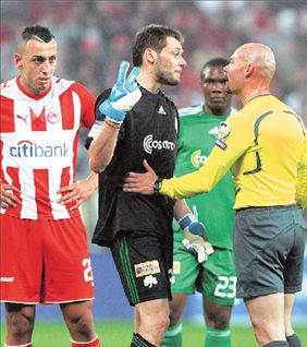 Τα παράπονα του Παναθηναϊκού για τον κερκυραίο ρέφερι δεν αφορούσαν τις υποδείξεις του, αλλά επειδή δεν διέκοψε τον αγώνα όταν έπεσαν αντικείμενα (μεταξύ των οποίων και ένας σουγιάς, σύμφωνα με το φύλλο αγώνα) με στόχο τον τερματοφύλακα του Τριφυλλιού Αλέξη Τζόρβα που κατήγγειλε μετά τον αγώνα ότι δέχθηκε σφαίρες από αεροβόλο όπλο από την κερκίδα των φανατικών του Ολυμπιακού.