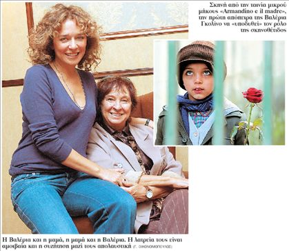 Σαν δίδυμος αδελφός του! Κάν΄ τον Google και θα δεις! Εντάξει, δεν θα καπνίσω, μαμά, έχεις δίκιο». Μια συνέντευξη με τη Βαλέρια Γκολίνο μπορεί να εξελιχθεί σε πραγματική απόλαυση. Πόσω μάλλον όταν είναι παρούσα και η μητέρα της, Λάιλα. Η λατρεία ανάμεσα στην ελληνοϊταλίδα ηθοποιό και στη μητέρα της είναι αμοιβαία. Βρισκόμαστε και οι τρεις στο μπαρ του Αττικόν και ζητώ από τη Λάιλα να παρεμβαίνει στην κουβέντα μας. Είμαι βέβαιος ότι θα προσθέσει το δικό της χρώμα.