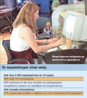 Oι έξι στους δέκα εργαζομένους πιστεύουν ότι η παρουσία τους στο γραφείο δεν είναι πλέον αναγκαία για να είναι παραγωγικοί, σύμφωνα με παγκόσμια μελέτη την οποία εκπόνησε προσφάτως η αμερικανική εταιρεία ερευνών ΙnsightΕxpress για λογαριασμό της εταιρείας του κλάδου πληροφορικής Cisco.