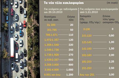 Ως το τέλος του έτους θα πρέπει 5,5 εκατομμύρια ιδιοκτήτες ΙΧ αυτοκινήτων και μοτοσικλετών να προμηθευθούν τα τέλη κυκλοφορίας, τα οποία είναι αυξημένα από 20 ως 88 ευρώ για περίπου 1,6 εκατομμύρια πολίτες και μειωμένα από 12 ως 330 ευρώ για 3,2 εκατομμύρια πολίτες.