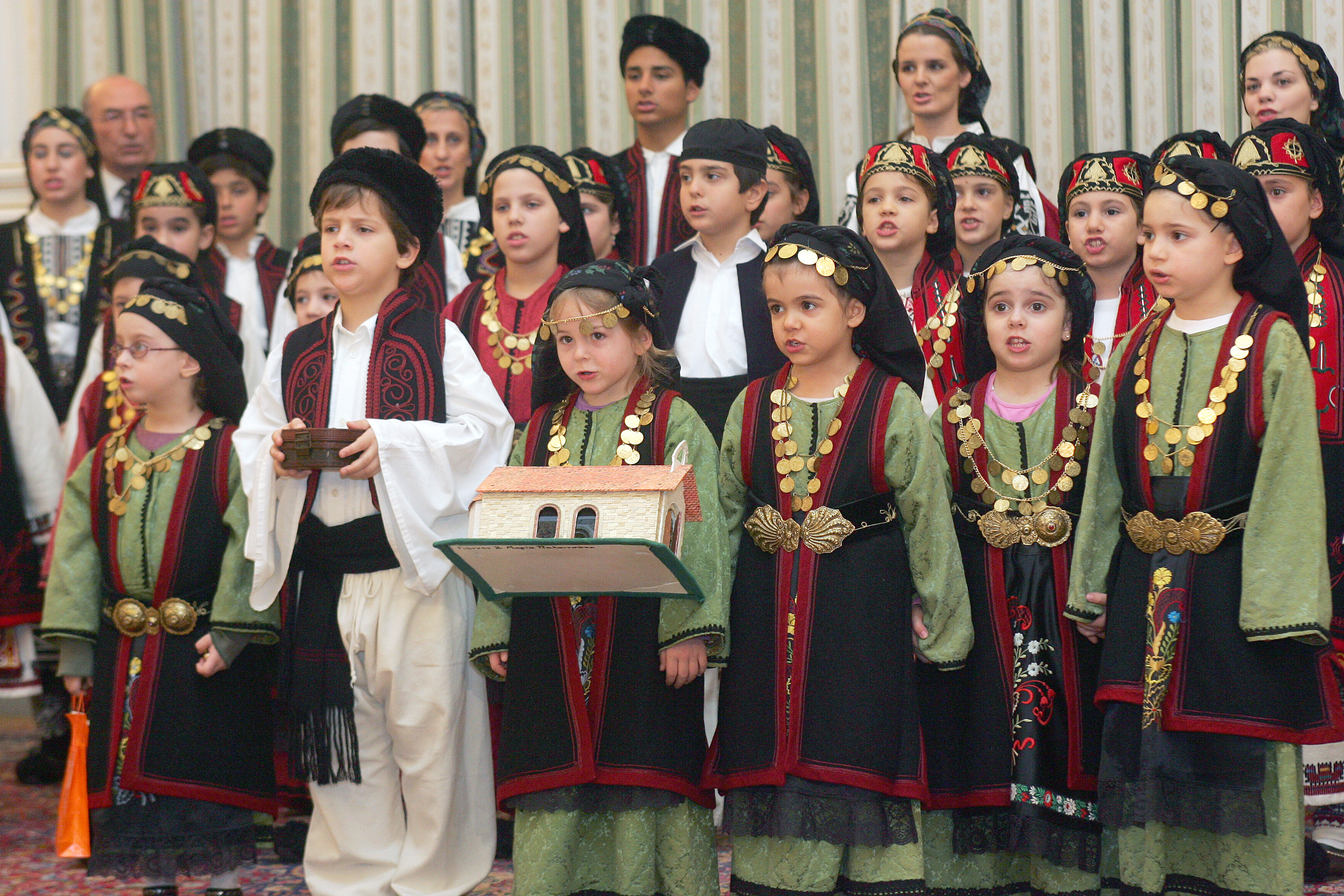 Η γγ του ΚΚΕ κυρία Αλέκα Παπαρήγα υποδέχτηκε την Πανηπειρωτική Συνομοσπονδία Ελλάδας με την χορωδία Παραδοσιακής Μουσικής που έψαλλε τα κάλαντα των Χριστουγέννων.