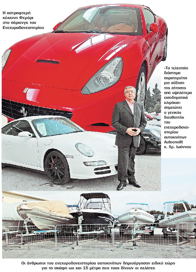 Οσοι λοιπόν δεν περνούν στις «εξετάσεις» των τραπεζών, οι οποίες γίνονται όλο και πιο αυστηρές, αναζητούν εναλλακτικές μορφές χρηματοδότησης. Και φυσικά ούτε από εδώ λείπει η ευρηματικότητα του Ελληνα. «Η πελατεία μας μετά το ξέσπασμα της κρίσης ρευστότηταςέχει αυξηθεί σε ποσοστό της τάξεως του 20%» αναφέρει ο κ. Χρ. Ιωάννου , γενικός διευθυντής του Ενεχυροδανειστηρίου Αυτοκινήτων Αutocredit, το οποίο εκτός από αυτοκίνητα δέχεται ως ενέχυρο και σκάφη! «Πλέον οι χώροι στάθμευσης της εταιρείας δεν επαρκούν για τη φύλαξη πολυτελών αυτοκινήτων μεγάλου κυβισμού, αρχικής εμπορικής αξίας έως και 350.000 ευρώ, αλλά ούτε και για σκάφη αναψυχής έως και 15 μέτρων, τα οποία δίδονται ως εγγύηση από τους πελάτες μας» σημειώνει ο ίδιος. Σύμφωνα με τον κ. Ιωάννου πρόκειται κατά κύριο λόγο για επιχειρηματίες από κλάδους που τα προηγούμενα χρόνια «έτρεχαν» με πολύ υψηλούς ρυθμούς ανάπτυξης και που λόγω της κρίσης ο τζίρος τους έχει μειωθεί κατακόρυφα- όπως η οικοδομή. Σε αυτές τις περιπτώσεις αναζητούν άμεσα μετρητά για να καλύψουν έξοδα ζωτικής σημασίας για τις δραστηριότητές τους, όπως η πληρωμή ασφαλιστικών εταιρειών, ΦΠΑ ή επιταγών που κινδυνεύουν να «σφραγιστούν». Και ενώ μέχρι πριν από λίγο καιρό οι περισσότεροι πελάτες ήταν μικρομεσαίοι, «το τελευταίο διάστημα παρατηρείται μια αύξηση της ζήτησης από υψηλότερα εισοδηματικά κλιμάκια» σημειώνει ο γενικός διευθυντής της Αutocredit.