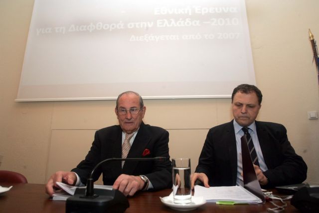 Αυτά είναι τα κύρια ευρήματα της Εθνικής Έρευνας για τη Διαφθορά στην Ελλάδα για το 2010, η οποία παρουσιάστηκε από τον Πρόεδρο της Διεθνούς Διαφάνειας-Ελλάδας κ.Κώστα Μπακούρηκαι τον Πρόεδρο και Διευθύνοντα Σύμβουλο της εταιρείας Public Issue κ.Γιάννη Μαυρή.