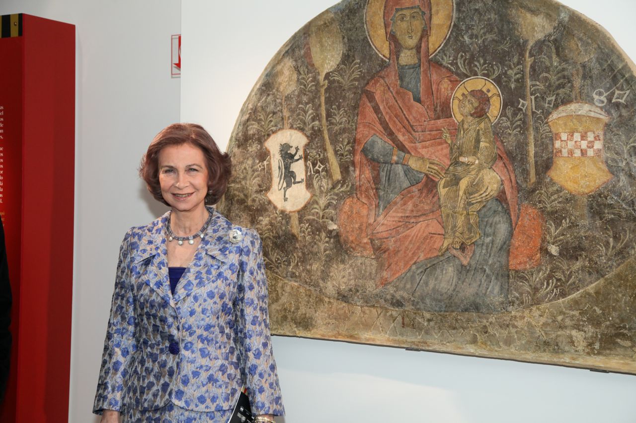Συνοδευόμενη από τον Ισπανό πρεσβευτή, Μιγκέλ Φουέρτες, η Βασίλισσα Σοφία κατευθύνθηκε στον εκθεσιακό χώρο και αφού χαιρέτισε έναν – έναν τους παρευρισκόμενους -δεν παρέλειψε να κάνει χειραψία ακόμα και με τους κάμεραμεν -παρακολούθησε την ομιλία της κυρίας Καφφαρέλ και εν συνεχεία ξεναγήθηκε στην έκθεση από τον επιμελητή της, Ντανιέλ Ντουράν ι Ντουέλτ.