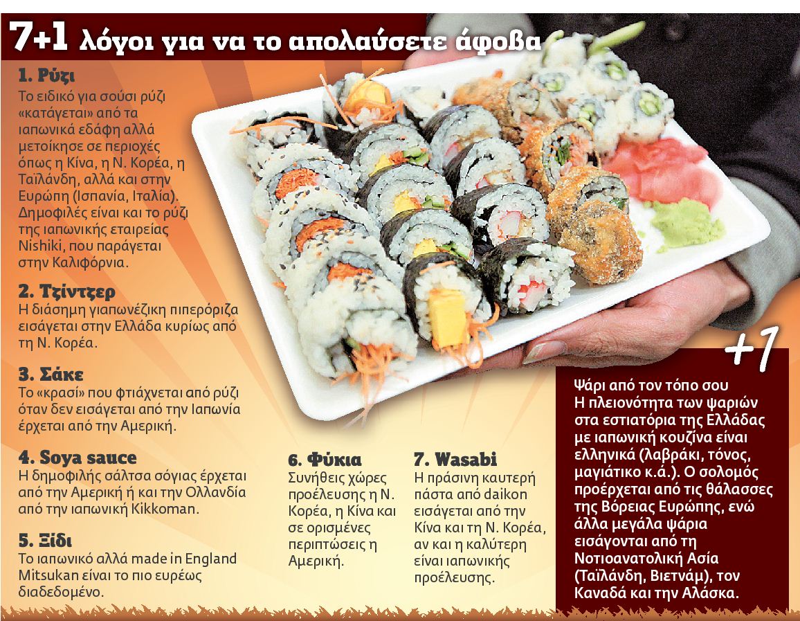Για τον ίδιο δεν συντρέχει λόγος ανησυχίας, αφού τα ιαπωνικά προϊόντα που χρησιμοποιούνται στα ελληνικά εστιατόρια δεν εισάγονται από τη Χώρα του Ανατέλλοντος Ηλίου. «Τότε επέστρεψα «Ρωτάνε από Αλλά ακόμη κι