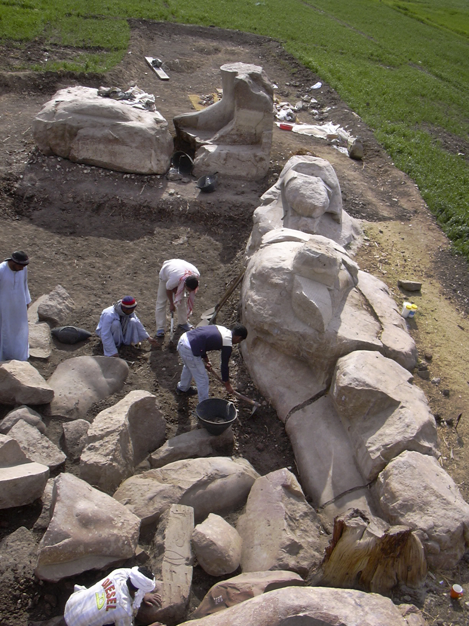 «Η ομάδα των αρχαιολόγων ασχολείται τώρα με τον καθαρισμό, τη συλλογή και την αποκατάσταση των επτά κομματιών για να τα ξαναβάλει στη θέση τους, και την αναζήτηση του κεφαλιού του αγάλματος» ανέφερε σε ανακοίνωσή του το αιγυπτιακό υφυπουργείο Αρχαιοτήτων, προσθέτοντας ότι αυτός ο «πέτρινος» Φαραώ πρόκειται να επανατοποθετηθεί στη θέση του στην είσοδο του ναού.