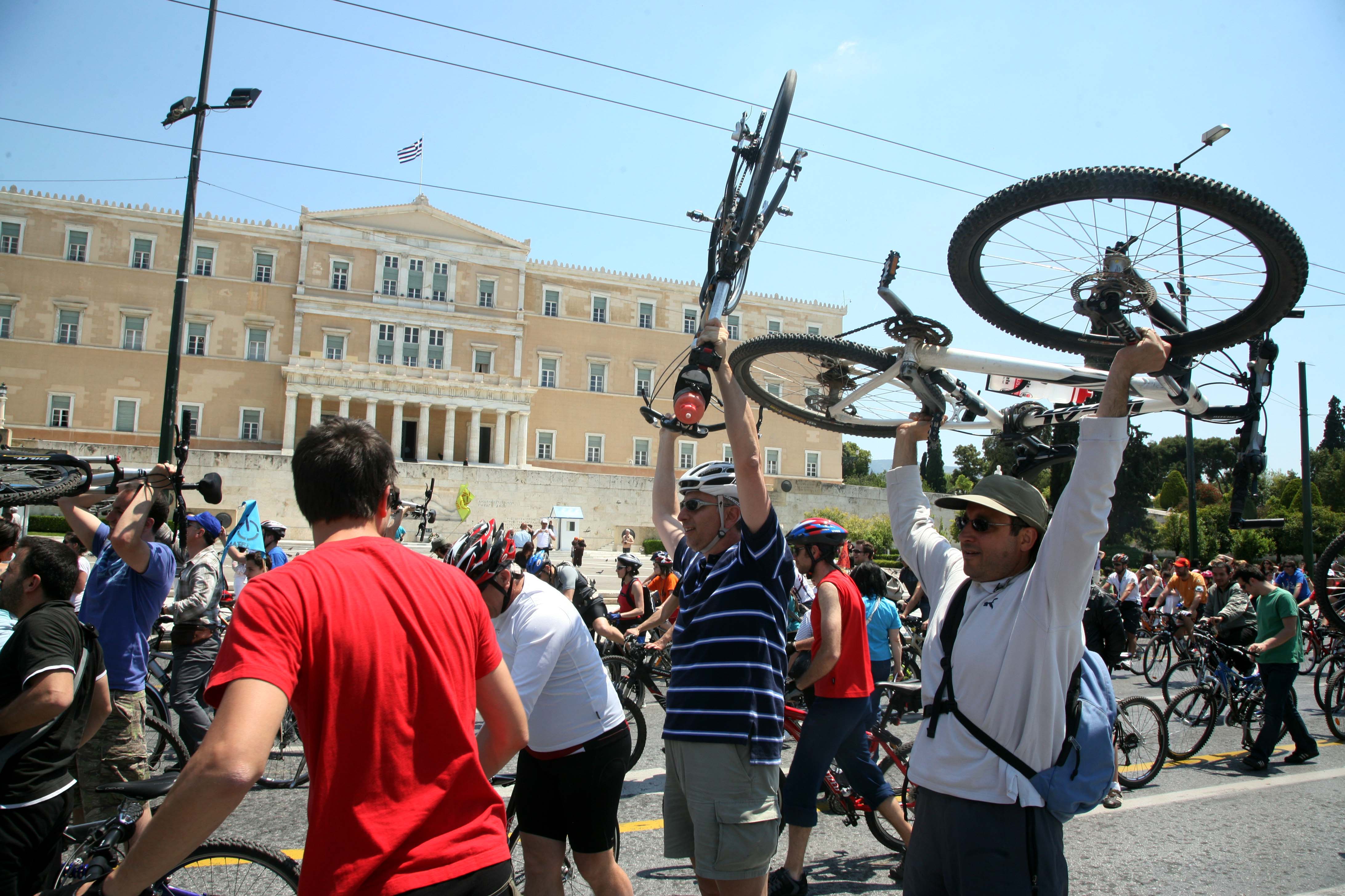 Περισσότεροι από 2.000 ποδηλάτες συμμετείχαν στην 4η Πανελλαδική Ποδηλατοπορεία που διεξήχθη το μεσημέρι της Κυριακής στο κέντρο της Αθήνας.