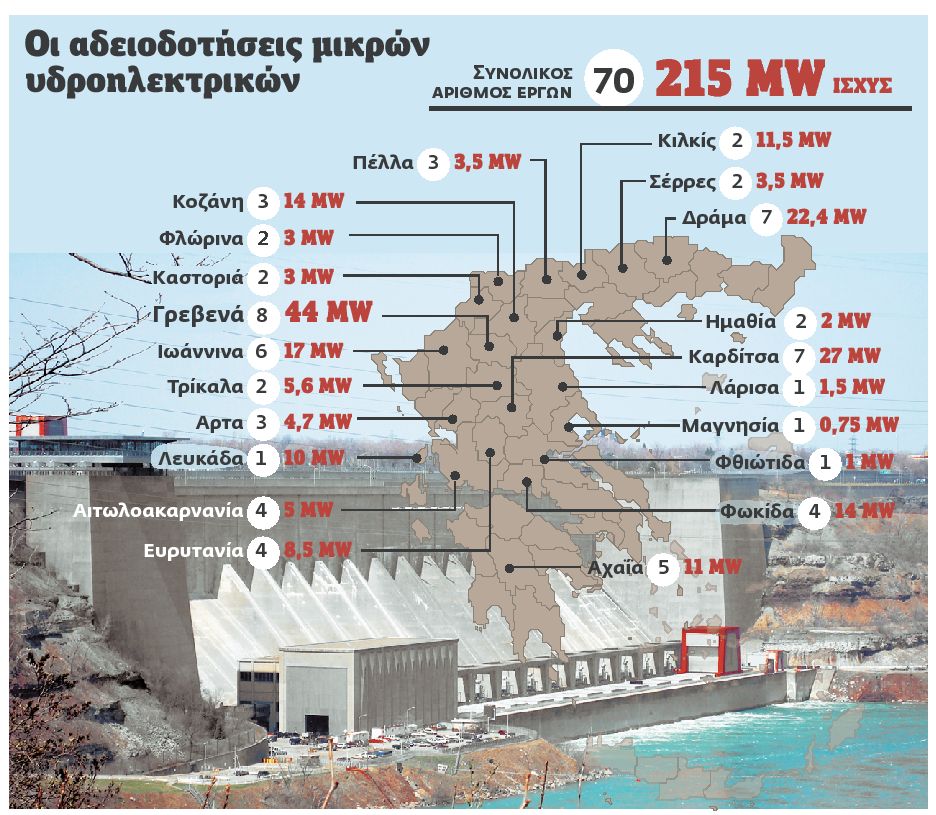 Ενα «αθόρυβο επενδυτικό θαύμα», και μάλιστα με πράσινη ταυτότητα, συντελείται στον τομέα των μικρών υδροηλεκτρικών έργων. Το τελευταίο οκτάμηνο ξεμπλόκαραν στη χώρα μας αδειοδοτήσεις για μικρά υδροηλεκτρικά έργα δυναμικότητας 335 ΜW, τα οποία κινητοποιούν, σε εποχή κρίσης, επενδύσεις μισού δισ. ευρώ. Με τον Νόμο 3851 που ψήφισε πέρυσι η υπουργός ΠΕΚΑ κυρία Τίνα Μπιρμπίλη διευκολύνθηκε σημαντικά η πρώτη φάση αδειοδότησης στα μικρά υδροηλεκτρικά και προχώρησαν γρήγορα οι προεγκρίσεις χωροθέτησης για δεκάδες μικρά υδροηλεκτρικά έργα δυναμικότητας από 2 ως 15 ΜW το καθένα. Οι επενδύσεις αυτές λίμναζαν από την περίοδο 2005-2009 και πολλές από αυτές περίμεναν ακόμη και πέντε χρόνια για μια απλή προέγκριση χωροθέτησης.