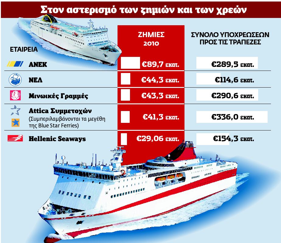 Μιλώντας στο «Βήµα» ο διευθύνων σύµβουλος της Blue Star κ. Μ. Σακέλλης και αντιπρόεδρος του ΣΕΕΝ επισηµαίνει: «Η κατάσταση στην ακτοπλοΐα είναι οριακή. Το 2011 θα είναι ο πέµπτος χρόνος που καταγράφουµε ζηµιές. Είµαστε ιδιωτικές επιχειρήσεις, δεν είµαστε ΔΕΚΟ να χρηµατοδοτούµαστε από το κράτος, ασχέτως αν συνδέουµε τη νησιωτική µε την ηπειρωτική χώρα και συµβάλλουµε στην άνοδο του τουρισµού. Εν µέσω κρίσης, στην Blue Star επενδύσαµε 140 εκατ. ευρώ για τα δύο πλοία “Blue Star Delos” και “Blue Star Patmos”. Kάνουµε αγώνα δρόµου για να παραλάβουµε ως το τέλος του Ιουλίου το “Delos”, προκειµένου να µη χάσουµε την καλοκαιρινή περίοδο, αλλά δεν ξέρουµε τι θα γίνει µε τις απεργίες». Από την 1η Ιουνίου το υπουργείο Θαλασσίων Υποθέσεων Νήσων και Αλιείας κατάργησε – λίγο πριν να «καταργηθεί» το ίδιο – ορισµένα τέλη και κρατήσεις υπέρ τρίτων που επιβάρυναν το ακτοπλοϊκό εισιτήριο. Ηταν ένα µακροχρόνιο αίτηµα των εταιρειών, αφού ουσιαστικά ήταν εισπράκτορες του κράτους και οι πολίτες «χρέωναν» σε αυτούς την υψηλή τελική τιµή του διαµορφούµενου ναύλου.