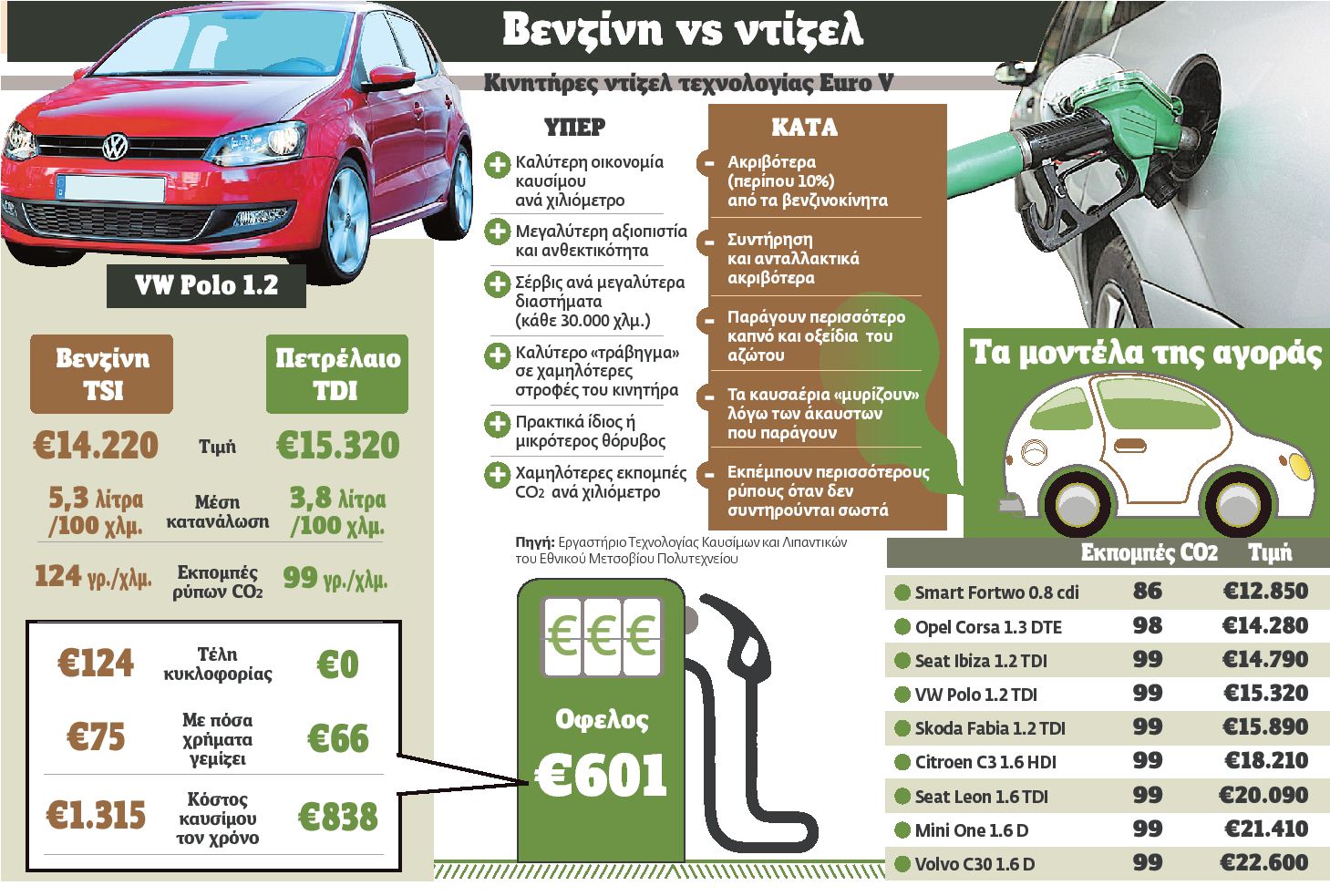 Είναι φιλικά προς το περιβάλλον τα πετρελαιοκίνητα οχήματα ή όχι; Προσδοκίες για δραστική μείωση του κόστους των μετακινήσεων και για να δοθεί το «φιλί της ζωής» στον χειμαζόμενο από την κρίση κλάδο του αυτοκινήτου δημιούργησε η δέσμευση του υπουργού Περιβάλλοντος κ. Γ. Παπακωνσταντίνου για την απελευθέρωση της κυκλοφορίας των πετρελαιοκίνητων ΙΧ αυτοκινήτων στην Αττική και τη Θεσσαλονίκη. Παραλλήλως, η αναφορά του υπουργού άνοιξε έναν ζωηρό διάλογο για τις περιβαλλοντικές επιπτώσεις της απελευθέρωσης, αλλά και για αυτές που ήδη υφίστανται από την ανεξέλεγκτη κίνηση πετρελαιοκίνητων φορτηγών, ταξί και πολλών ελλιπώς συντηρημένων λεωφορείων σε Αθήνα και Θεσσαλονίκη. «Το Βήμα της Κυριακής» ανοίγει τον φάκελο «ντίζελ» και παρουσιάζει τα τελευταία επιστημονικά δεδομένα, το οικονομικό όφελος, τους περιβαλλοντικούς κινδύνους, τις «γκρίζες ζώνες» και τα επιχειρήματα των δύο πλευρών.