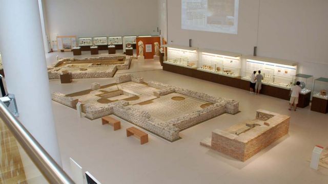 Τα ψηφιδωτά δάπεδα αυτής της τελευταίας περιόδου μάλιστα, που είχαν βρεθεί σε κατάλοιπα πολυτελών κατοικιών αποτελούν και το μεγάλο πλεονέκτημα αυτού του μουσείου λόγω του αριθμού και της ποιότητάς τους. Στην τρίτη ενότητα εξάλλου παρουσιάζονται τα ταφικά έθιμα της περιοχής _αρχιτεκτονική και λατρεία_ με την ανακατασκευή μάλιστα τριών τάφων, δύο μυκηναϊκών και ενός ρωμαϊκού μαζί με τα οστά των νεκρών και τα κτερίσματά τους.