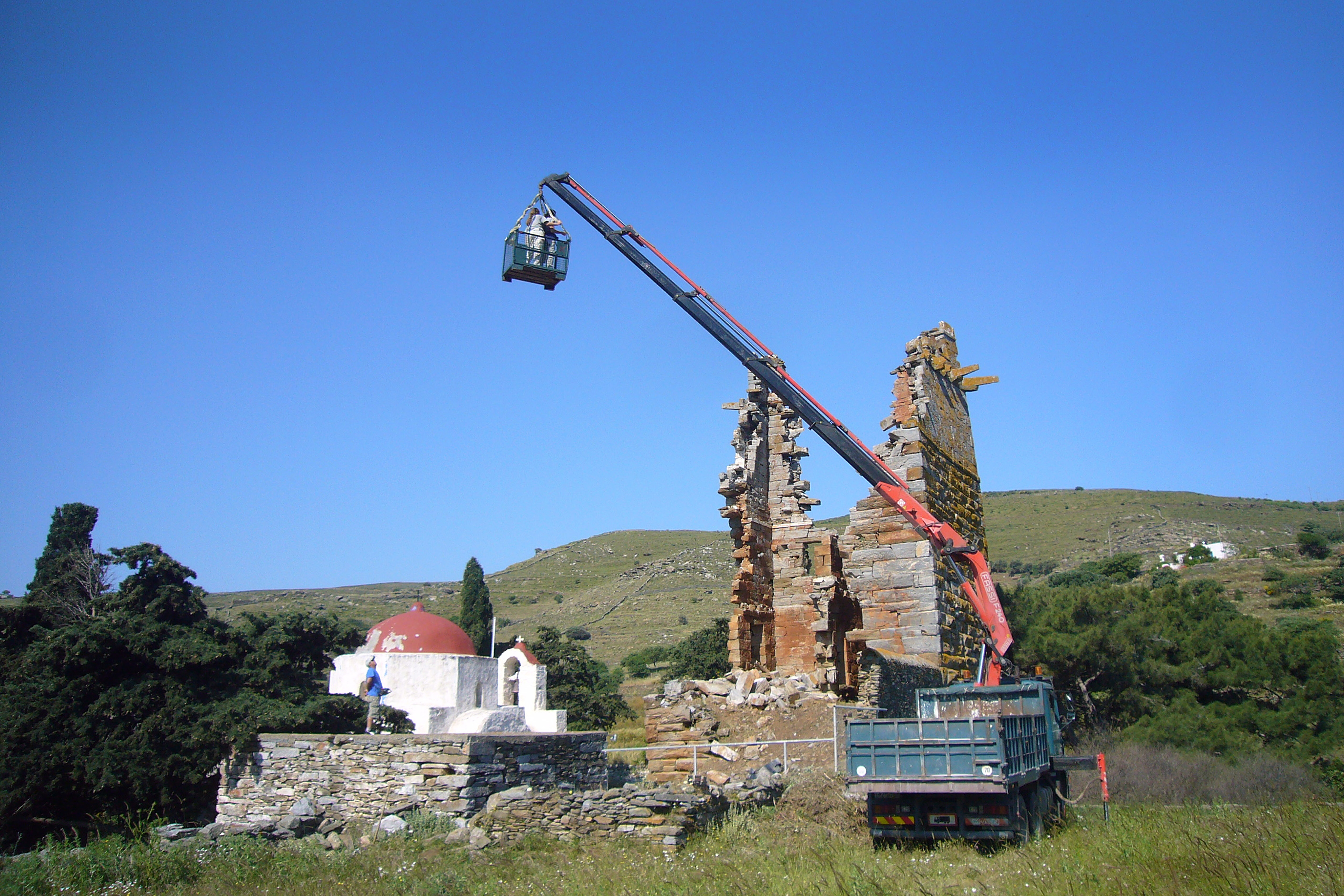 Ενας τετράπλευρος πύργος του 4ου αιώνα π.Χ., τμήμα του οποίου στέκεται ακόμα στο αρχικό του ύψος των 20 μέτρων αναστηλώνεται στην Αγία Μαρίνα της Κέας, σε έναν από τους αρχαίους οικισμούς του νησιού, την Καρθαία. Πρόκειται για ένα εξαιρετικό μνημείο τόσο λόγω της χρονολόγησης και της κατασκευής του όσο και για το γεγονός ότι ως τα μέσα του 19ου αιώνα σωζόταν ακέραιο, με τη στέγη και τον περιμετρικό εξώστη του, διαφυλάσσοντας έτσι μοναδικά στοιχεία αρχαίας αρχιτεκτονικής, αφού διατηρούνται μόνον σ΄ αυτό το κτίσμα. Ο κίνδυνος κατάρρευσής του όμως τα τελευταία χρόνια ήταν μεγάλος, έτσι απαιτήθηκαν από το υπουργείο Πολιτισμού δραστικές επεμβάσεις.