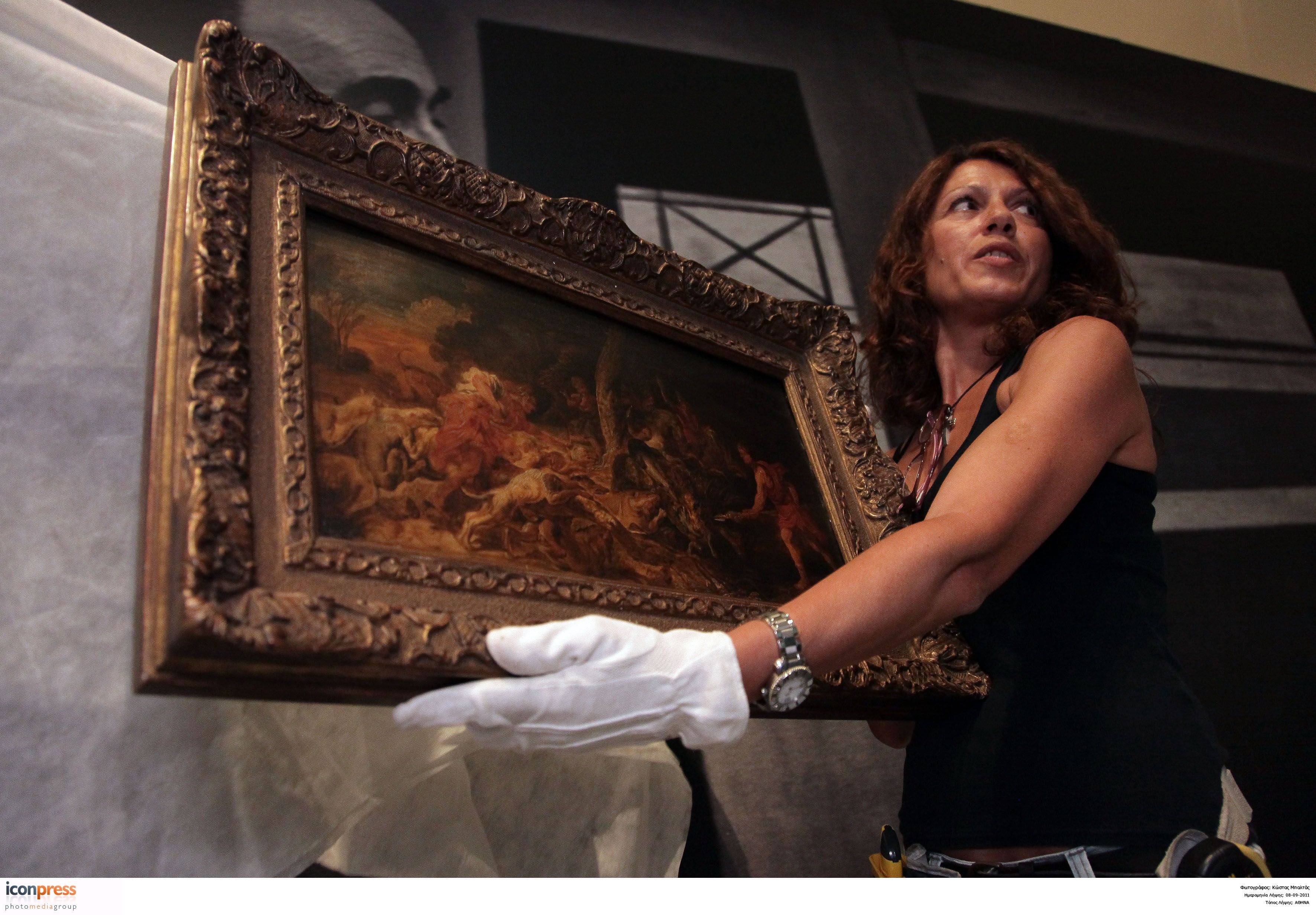 «Κλοπές έργων τέχνης συμβαίνουν καθημερινά σε όλο τον κόσμο, αυτό που επιτυγχάνεται σπάνια είναι η ανεύρεσή τους», είπε σήμερα, Πέμπτη, η διευθύντρια της Εθνικής Πινακοθήκης κυρία Μαρίνα Λαμπράκη-Πλάκα, έχοντας δίπλα της «Το κυνήγι του Καλυδώνιου κάπρου» του Πέτερ Πάουλ Ρούμπενς, που βρέθηκε από τους τοίχους του Μουσείου της Γάνδης στα χέρια μια ελληνίδας τηλεπαρουσιάστριας και ενός παλαιοπώλη στην Πλάκα.