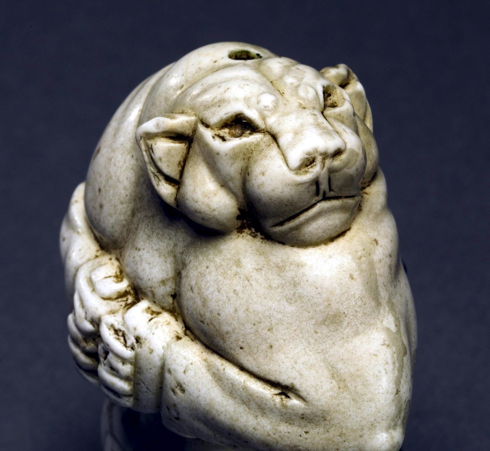 epa01120026 An undated handout picture released 14 September 2007 of 'The Guennol Lioness', one of the last known masterworks from the dawn of civilisation remaining in private hands. This December, Sotheby s New York will offer this approximately 5,000 years ago in the region of ancient Mesopotamia created figure for sale. The white limestone sculpture has been on view at the Brooklyn Museum of Art for nearly 60 years and extensively published. Diminutive in size (around 8.3 centimetres in height), but monumental in conception, this icon of Near-Eastern Ancient art is estimated to sell for US $14 to 18 million. The proceeds of the auction are to benefit a charitable trust. EPA/SOTHEBY'S/HO HANDOUT EDITORIAL USE ONLY