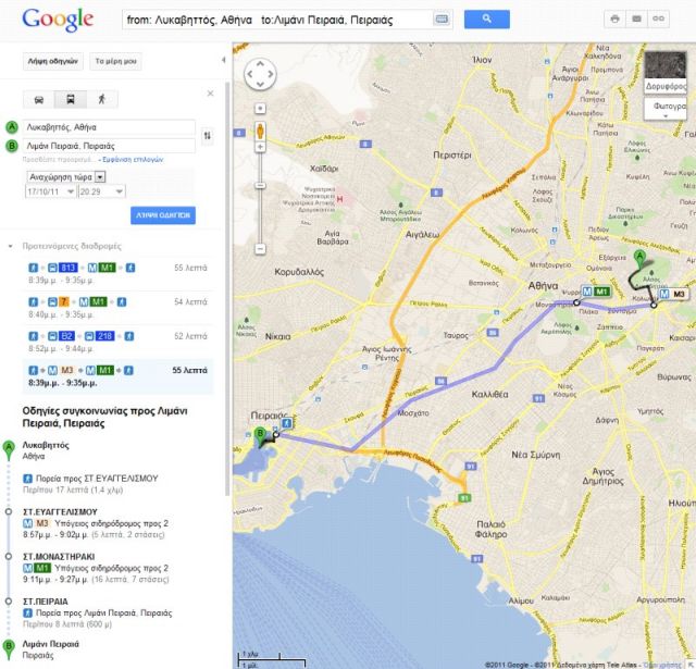 Η εφαρμογή που ενσωματώνει στους χάρτες της Google τις πληροφορίες για τις διαδρομές των λεωφορείων, του μετρό, του ηλεκτρικού, του τρόλεϊ, του τραμ και του προαστιακού, προσφέρει στο επιβατικό κοινό την δυνατότητα επιλογής της βέλτιστης διαδρομής με τα μέσα μαζικής μεταφοράς,
