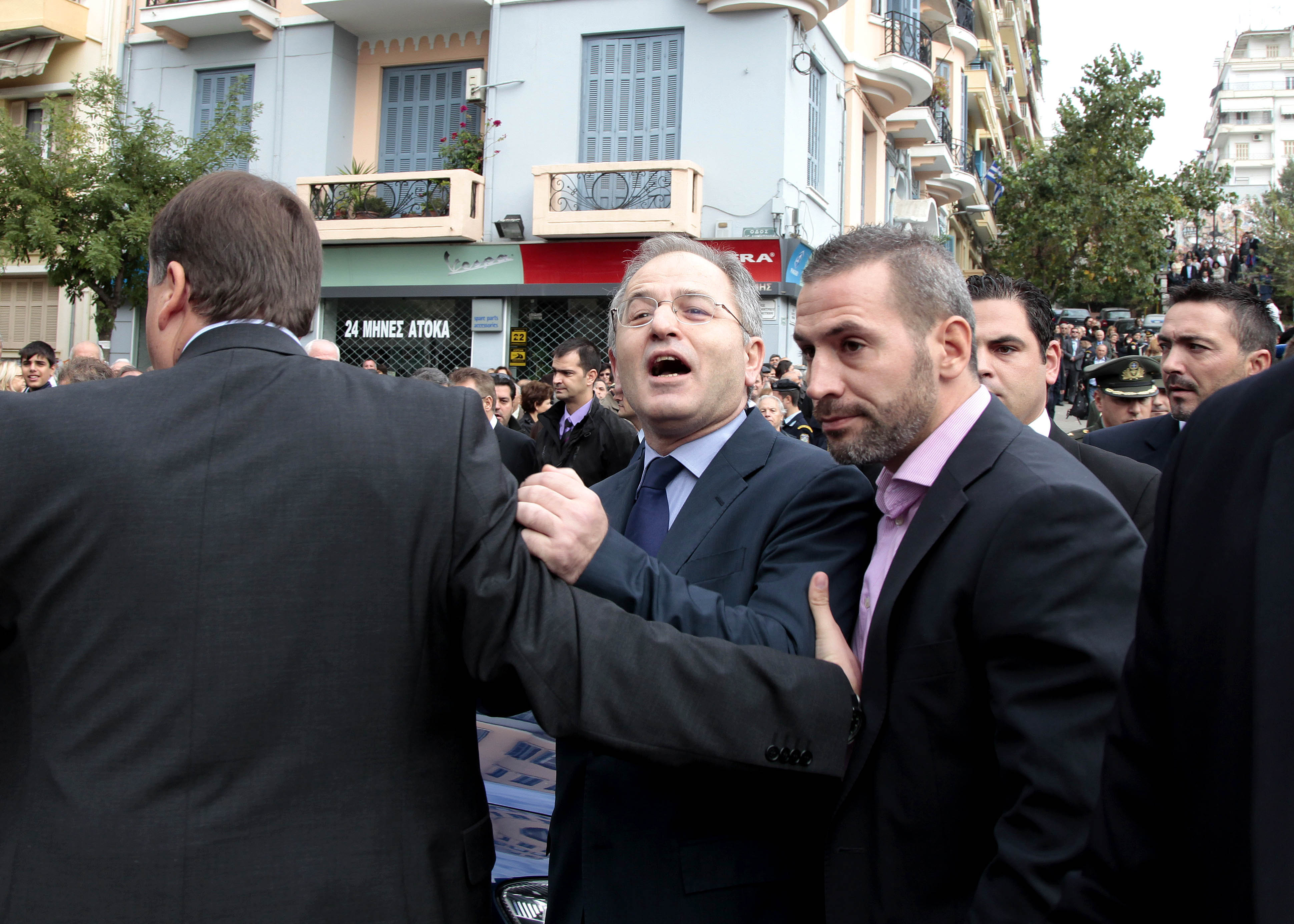 Οι συγκεντρωμένοι άρχισαν να φωνάζουν «ρεζίλια», «κλέφτες – κλέφτες», «αλήτες» και «ντροπή», εκφράσεις που σταμάτησαν μόνο μετά την είσοδο των επισήμων στο ναό του Αγίου Δημητρίου του Μυροβλήτη.