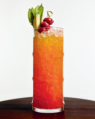 Μέθοδος: Shake. Σερβίρετε σε ποτήρι τύπου Collins. Γαρνίρετε με λεμονόχορτο και πετροκέρασα.